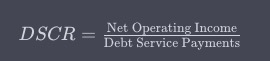 DSCR=Net Operating IncomeDebt Service Payments.