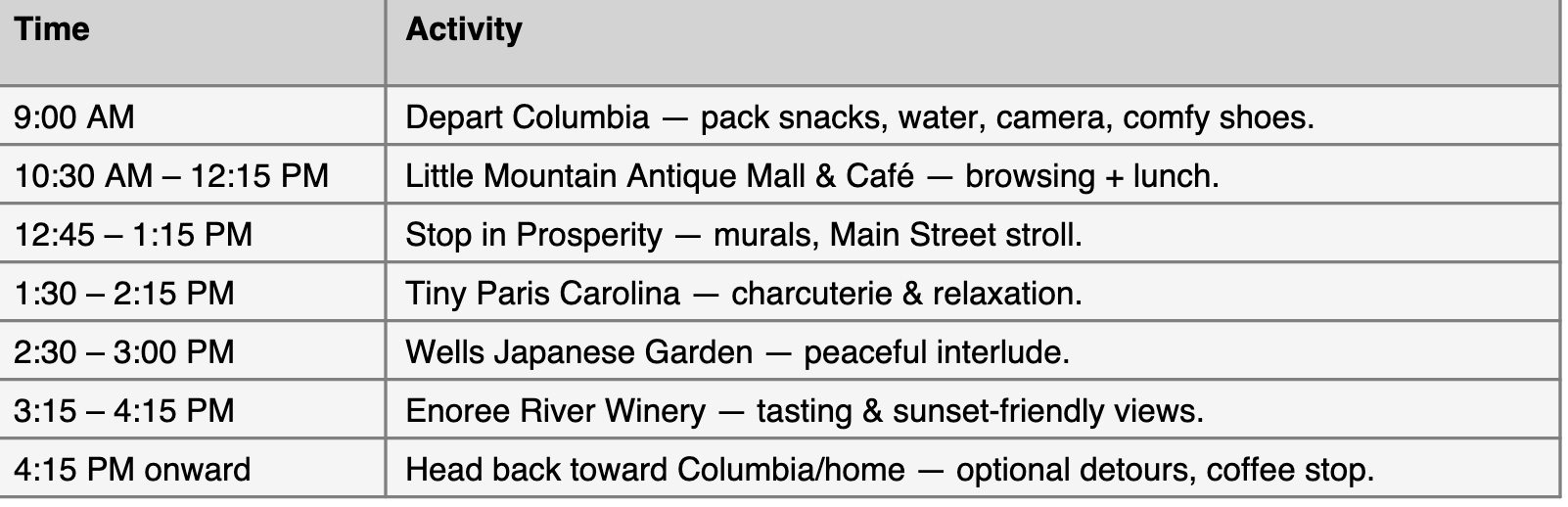 #BackRoadSouthCarolina #SCByways #SouthCarolinaRoadTrip #RuralSC #FamilyTravelSC #HiddenGemsSC #NewberrySC #LittleMountainSC #ProsperitySC #SCVineyards #JapaneseGardenSC #TinyParisCarolina #AntiqueMallSC #RMFRealtyTrips